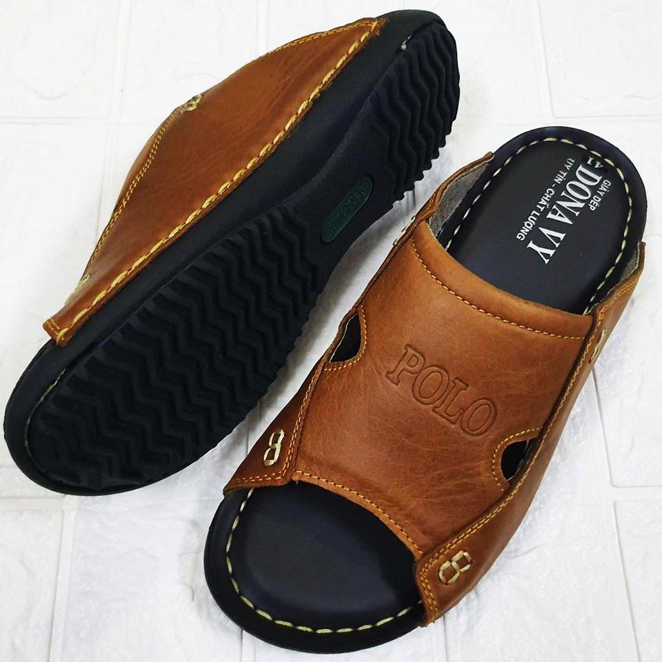 - Dép Nam với chất liệu da Bò bền đẹp kết hợp đế cao su êm nhẹ chống trơn trượt giúp bạn Nam luôn thoải mái, tự tin khi đi chơi, dạo phố, đi làm.