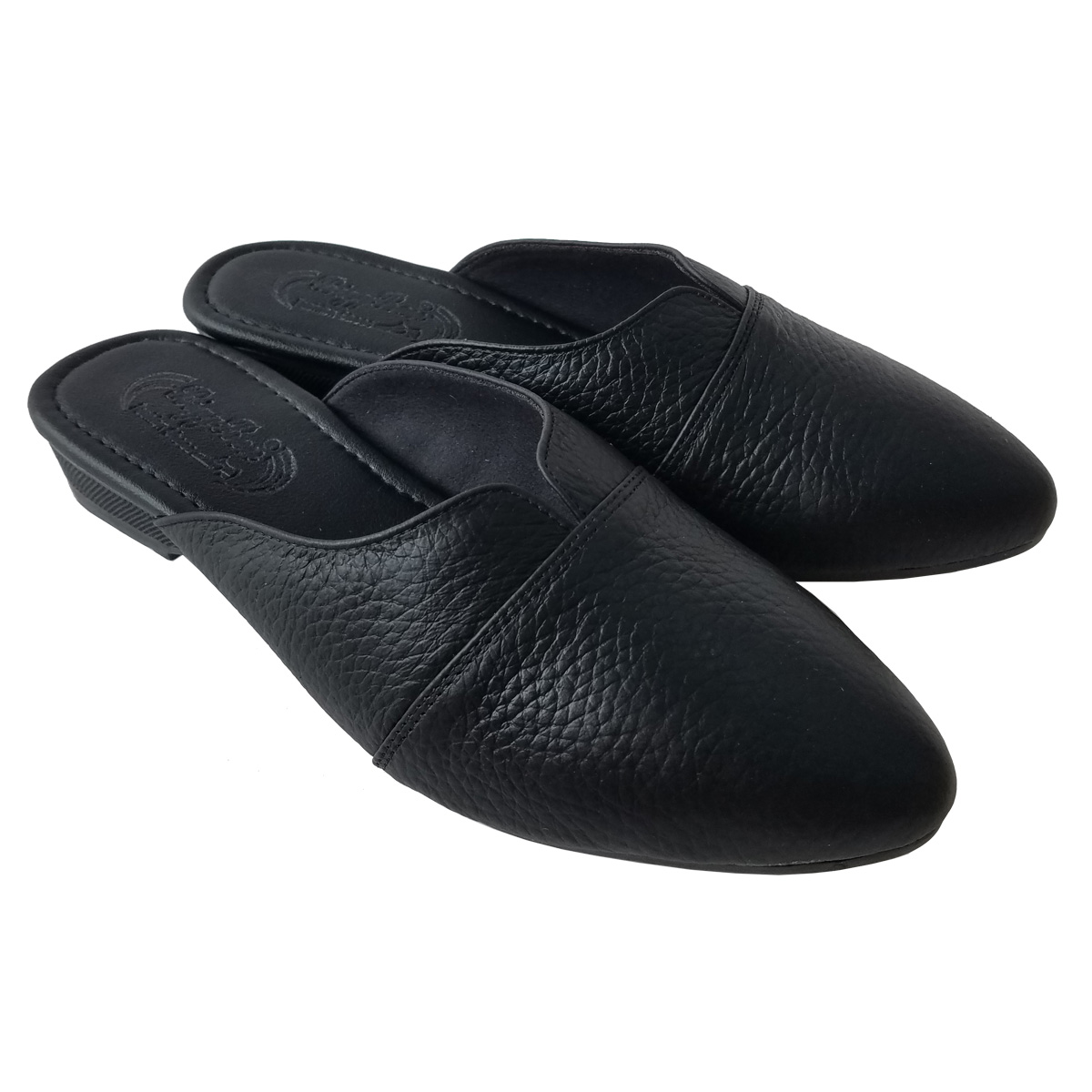 Giày Sục Nữ Giày Cao Gót 3Cm Da Bò Thật Siêu Mềm Cao Cấp Evelynv 3P2916 (Đen)