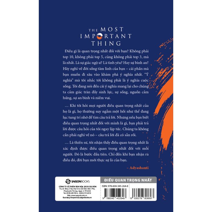 Cuốn sách The Most Important Thing: Discovering Truth at The Heart of Life này sẽ không chỉ giúp bạn chiêu đãi và nâng cao tinh thần của mình, mà còn cung cấp cho bạn phương tiện để đi sâu vào trải nghiệm trực tiếp về sự hiện hữu, từ đó bạn sẽ nếm được vị của phúc lành nhờ biết ưu tiên cho điều quan trọng nhất.