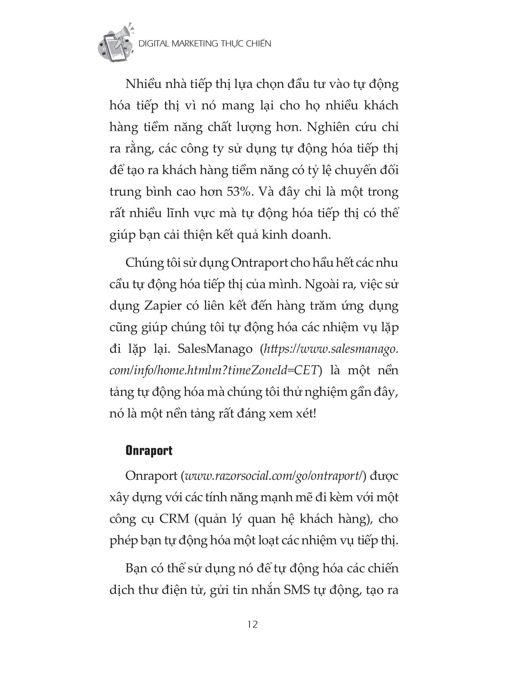 Cuốn sách ‘Digital Marketing Thực Chiến’ là tập hợp những ý tưởng hay nhất từ những tác giả giỏi nhất trên thế giới về các chủ đề truyền thông xã hội, truyền thông kỹ thuật số, tiếp thị và công nghệ. Trong cuốn sách này, các nhà tiếp thị kỹ thuật số trên thế giới chia sẻ thông tin chi tiết về cách họ phát triển doanh nghiệp của m.ình bằng kỹ thuật số.