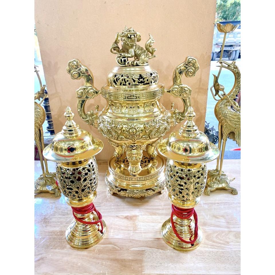 Bộ Ngũ Sự Bằng Đồng Vàng Cao 45Cm Phù Hợp Bàn Thờ Chung Cư Hay Tủ Thờ Nhỏ | Xưởng Đồng Đông Sơn