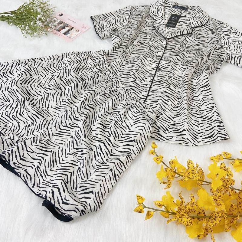 Đồ bộ mặc nhà nữ Pijama lụa VILADY - B136 kiểu đồ bộ ngắn họa tiết vằn đen siêu dễ thương, chất liệu lụa Pháp ( lụa latin)