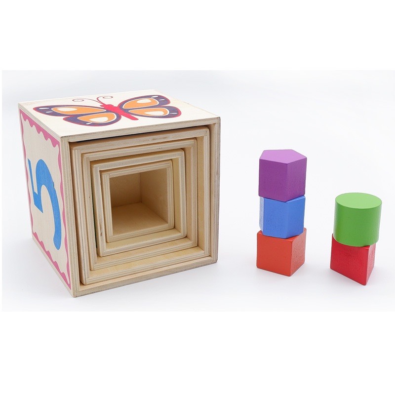 Đồ Chơi Tháp Xếp Chồng Thả Hình Khối Đồ Chơi Gỗ Gồm 5 Lớp Giúp Bé Phát Triển Trí Tuệ.