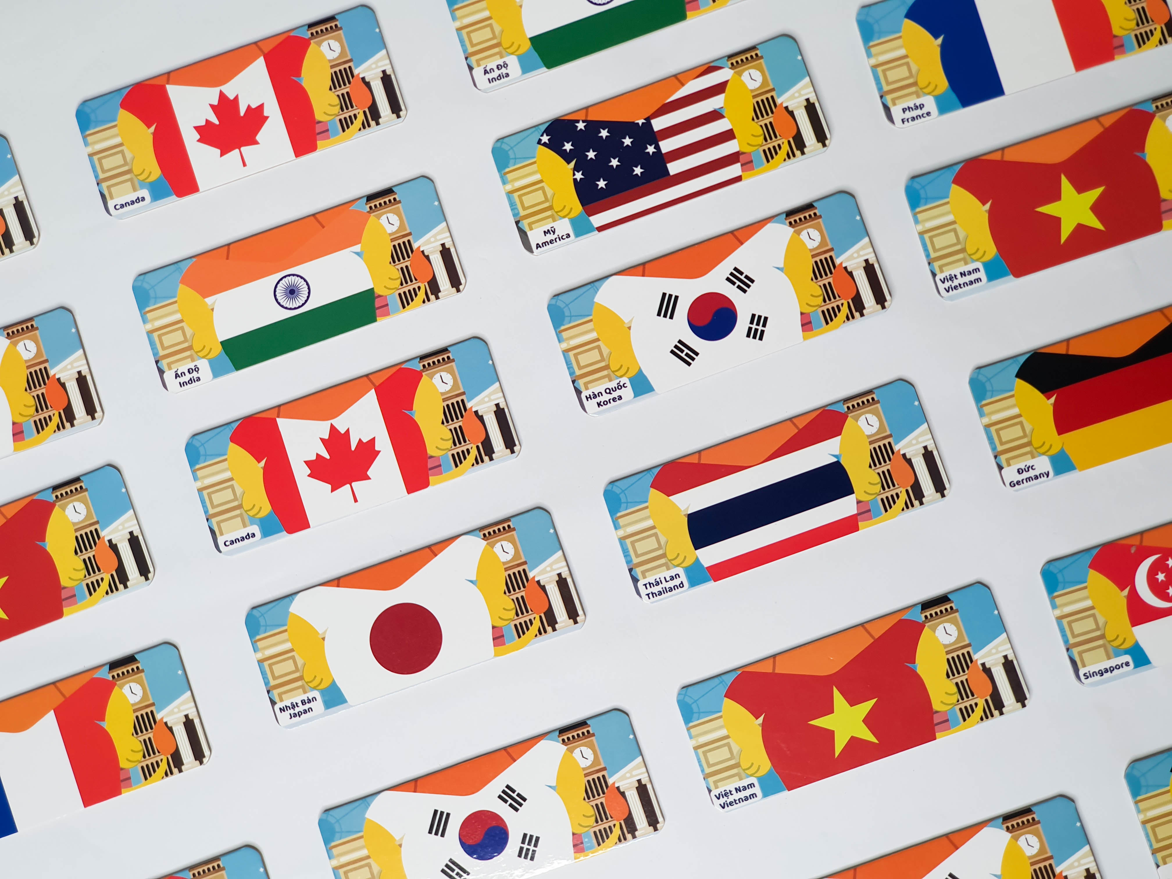 Công ty phát hành: Manabee.Chất liệu: Giấy bồi nhiều lớp an toàn cho bé.Nội dung: 4 bảng sư tử. 40 thẻ cờ các nước.Kích thước: 25x20x4 cmNăm xuất bản: 10/2020Hướng dẫn chơi trong mỗi hộp.“Du lịch thế...
