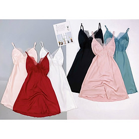 Đầm ngủ 2 dây phối ren chất liệu lụa ngọc trai Quảng Châu mặc vừa mềm vừa mát rất dễ chịu