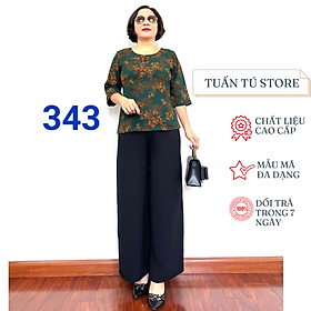 Set đồ trung niên Bộ phối Áo lụa Satin mềm mượt họa tiết nhã nhặn và quần đũi đen dày dặn size từ 45kg tới 65kg - Tuấn Tú Store 68 - Chi tiết sản phẩm: Áo tay lỡ, quần dài. Kiểu dáng sang trọng, quý phái. -