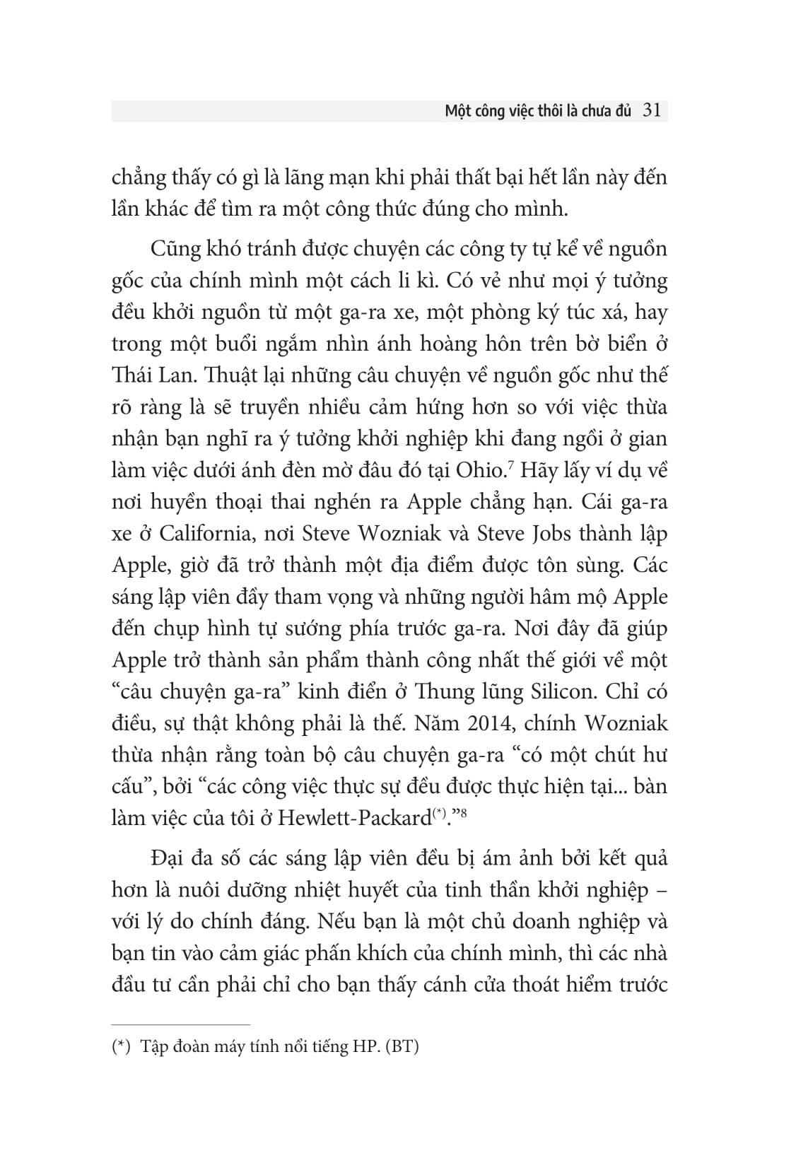 Một sinh viên mới tốt nghiệp đại học bắt đầu lập ra một đế chế bánh mì kẹp tôm hùm, một nhà thiết kế tự điều hành nhãn hiệu quần áo trẻ em phát đạt, một nhóm bạn từ lớp học Kinh thánh cùng nhau thành lập một công ty bia thủ công, tất cả đều là việc làm bán thời gian. Đối với họ, khởi nghiệp kinh doanh là lựa chọn có tính gây nghiện hơn là một lựa chọn cố định tuyệt đối, nó đem đến cho họ những cơ hội ở bề mặt cùng sự hạn chế rủi ro nằm ở tầng sâu. Tất cả điều ấy giúp cuộc đời họ phong phú và thú vị hơn. Tại sao bạn lại không để những điều này cũng đến với mình cơ chứ?
