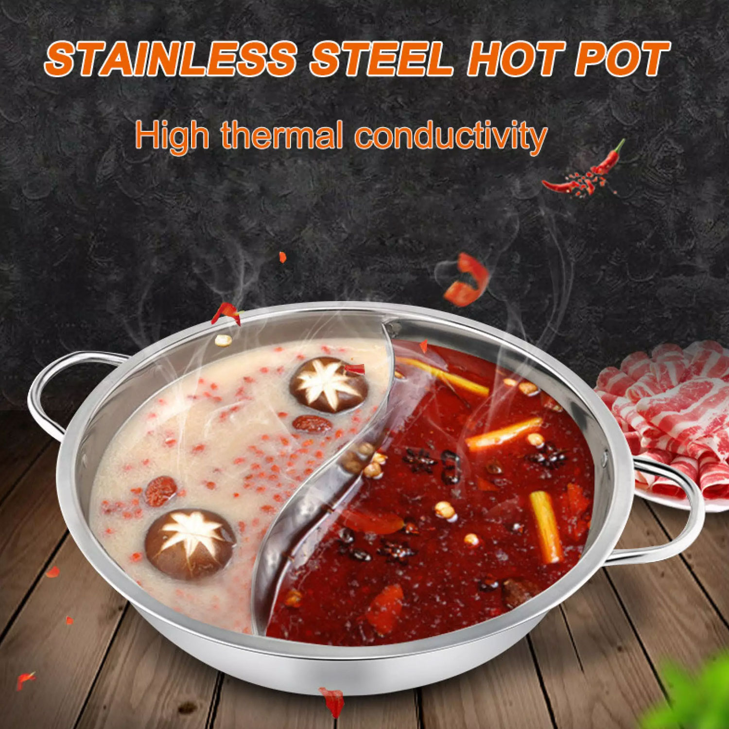 - Nồi lẩu inox 2 ngăn có thể sử dụng được trên bếp ga, bếp từ, thiết kế nắp đậy bằng kim loại vừa khít, sạch sẽ, tiện dụng, giúp công việc nội trợ trở nên dễ dàng hơn.