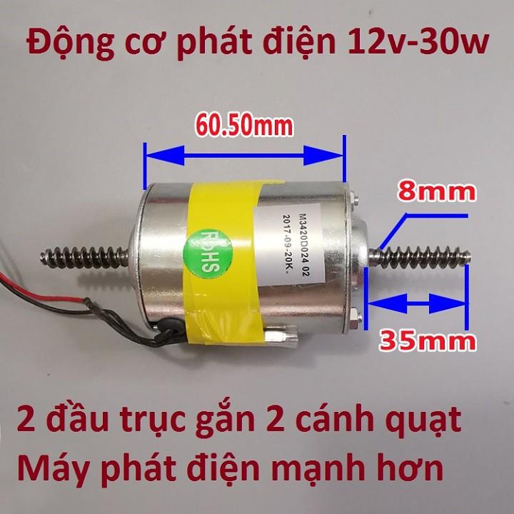 - Tốc độ 2400 vòng/phút điện áp ra 300V Quý khách chỉ cần mua thêm cánh quạt (càng lớn càng tốt) giá 18.000 đồng + Bóng đèn 3v hoặc 5v là chiếu sáng cả nhà. Sản phẩm chỉ có duy nhất động cơ, không bao gồm thêm bất cứ phụ kiện nào khác. Ngoài ra shop còn có các động cơ phát điện nhỏ sau: