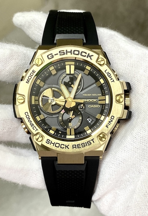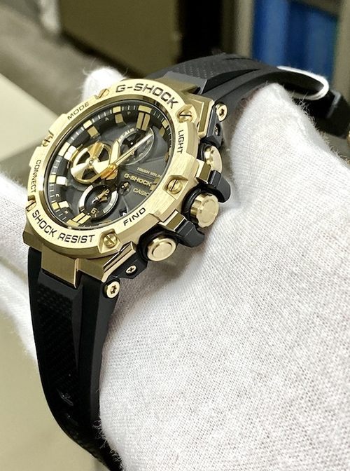 Chiêm ngưỡng phong cách độc lạ của mẫu đồng hồ G-STEEL với sự kết hợp các bộ phận kim loại và nhựa trong thiết kế tông màu đen và vàng vốn luôn được ưa chuộng.
