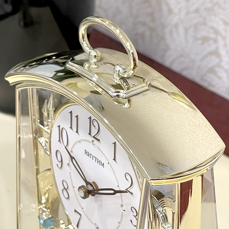 Đồng hồ để bàn Nhật Bản Rhythm 4RP796WS18, dùng pin (AAx2), vỏ nhựa cao cấp mạ vàng kết hợp mica trong suốt nhìn xuyên thấu, Kích thước 14.0 x 22.8 x 8.3cm, trọng lượng 390g. Quả