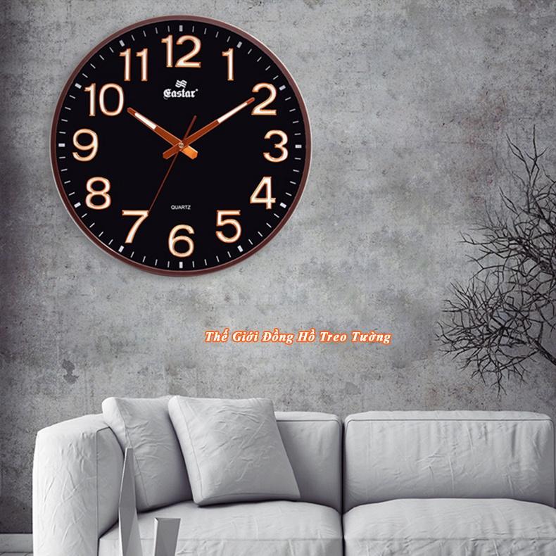 Đồng hồ Treo Tường KIM TRÔI DẠ QUANG EASTAR Mặt ĐEN Kim VÀNG - Số nổi 3D - 885B
