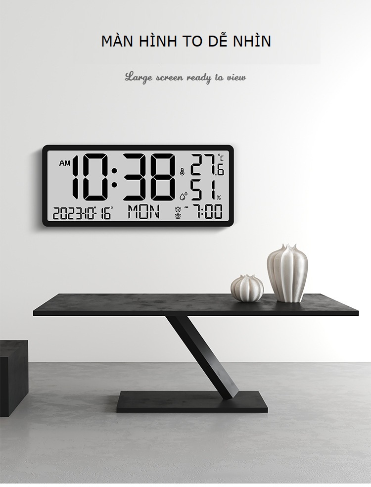 ✨Đồng Hồ LCD Màn Hình Lớn Đa Năng Báo Thức, Nhiệt Độ, Độ Ẩm - L04