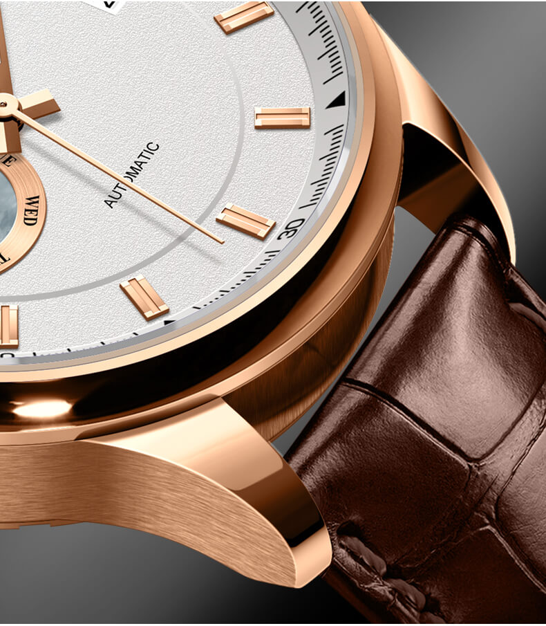 ĐẶC ĐIỂM NỔI BẬT Mã sản phẩm 528G Giới tính Nam Kiểu máy Automatic (Máy Cơ) Đường kính mặt 41 mm Độ dày 10,5 mm Chất liệu vỏ Thép không gỉ 316L Chất liệu dây Dây da cao cấp Chất liệu mặt