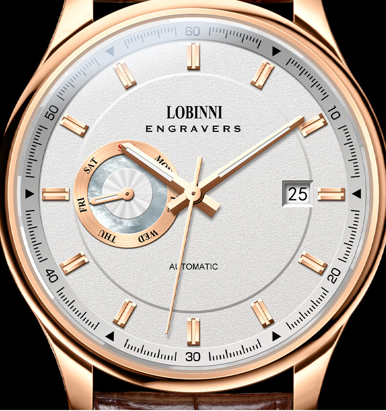 Nhãn hiệu LOBINNI Mã sản phẩm No.17017-1 Giới tính Nam Kiểu máy Automatic (Máy Cơ) Đường kính mặt 40 mm Độ dày 12 mm Chất liệu vỏ Thép không gỉ 316L Chất liệu dây Dây da cao cấp Chất liệu mặt kính Sapphire Crystal