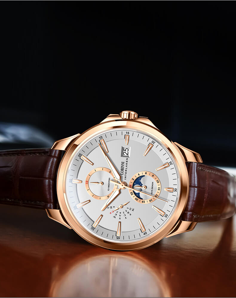 Đồng hồ nam chính hãng LOBINNI Thụy Sỹ Thiết kế sang trọng, đẳng cấp cho quý ông Thời gian trữ cót lâu lên đến 40h Chống nước 5ATM, Kính sapphire Toàn bộ máy được làm