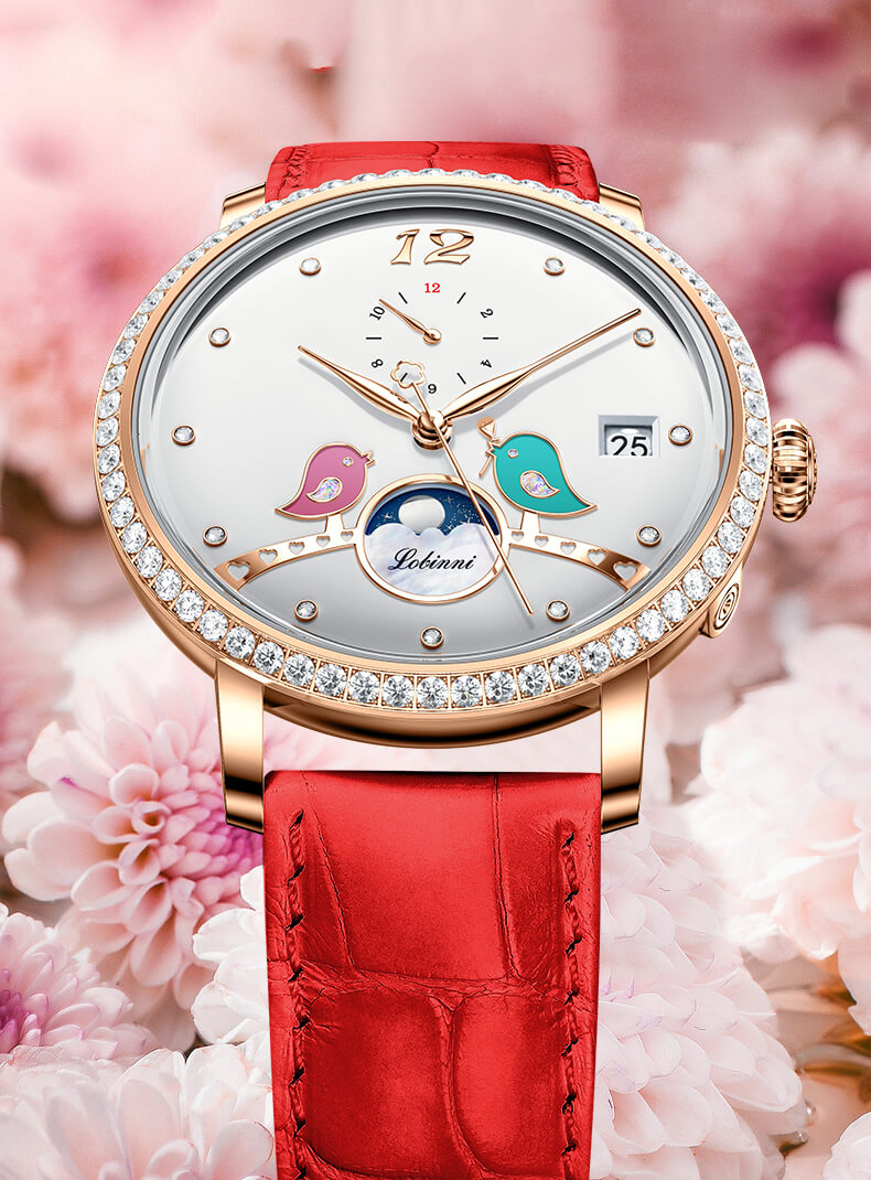 Nhãn hiệu LOBINNI Mã sản phẩm No.2065-1 Giới tính Nữ Kiểu máy Automatic (Máy Cơ) Đường kính mặt 36 mm Độ dày 9,7 mm Chất liệu vỏ Thép không gỉ 316L Chất liệu dây Dây da cao cấp Chất liệu mặt kính Mineral Crystal