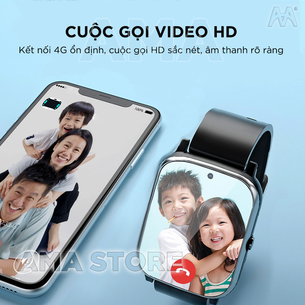 Đồng hồ Thông minh AMA Watch Y86 có CHPlay xem được Youtube có Zalo Gắn sim 4G Định vị Kép GPS Wifi cho Trẻ em cấp 1 2 Đối với bất