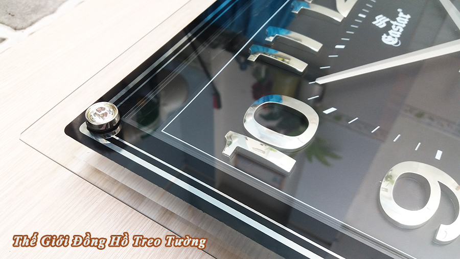 ✨Đồng Hồ Treo Tường KIM TRÔI EASTAR Chữ Nhật Mặt Đen – Mặt Kính 3D – Bộ Số Nổi Ánh Kim Bạc – Kèm Pin Maxell