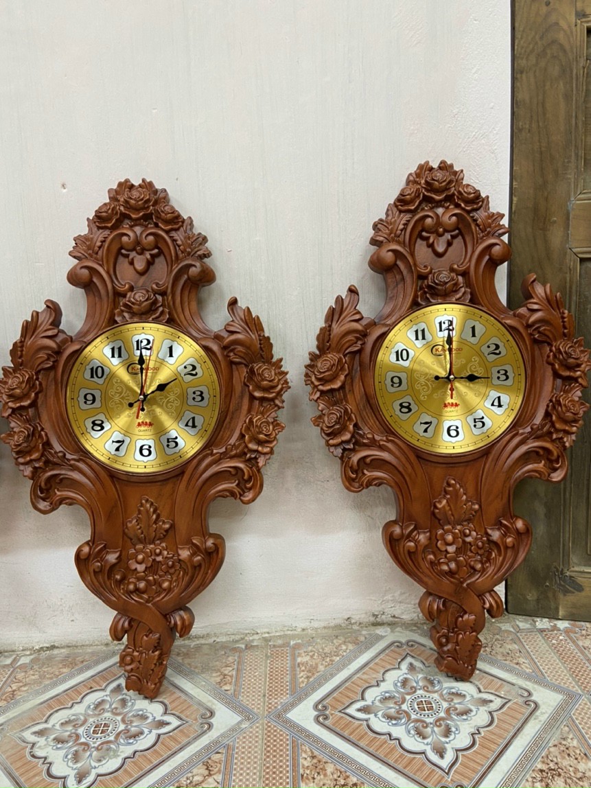 ✨Đồng hồ treo tường tân cổ điển bằng gỗ gõ 40×70×4cm