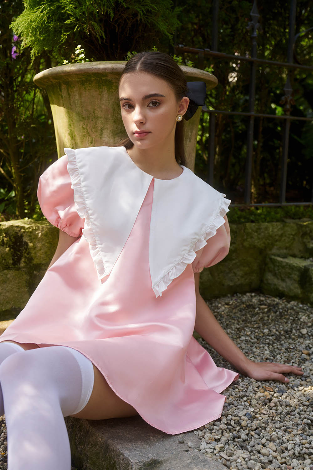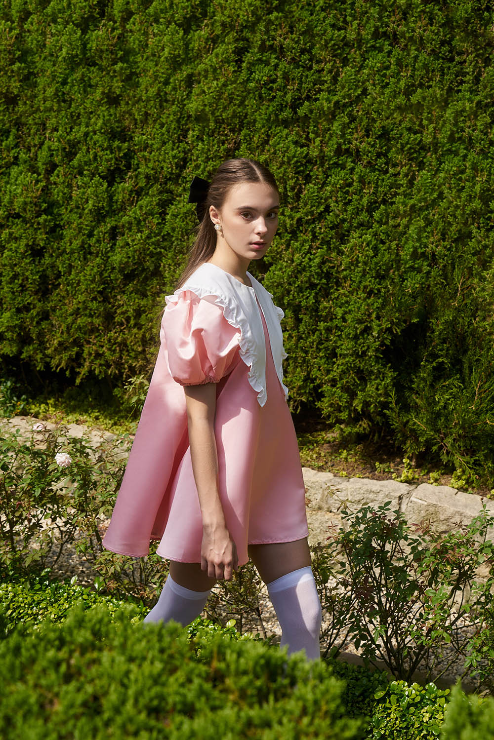 ✨DOTTIE - Đầm ngắn cổ phối vải nhún bèo - Hồng - D0463