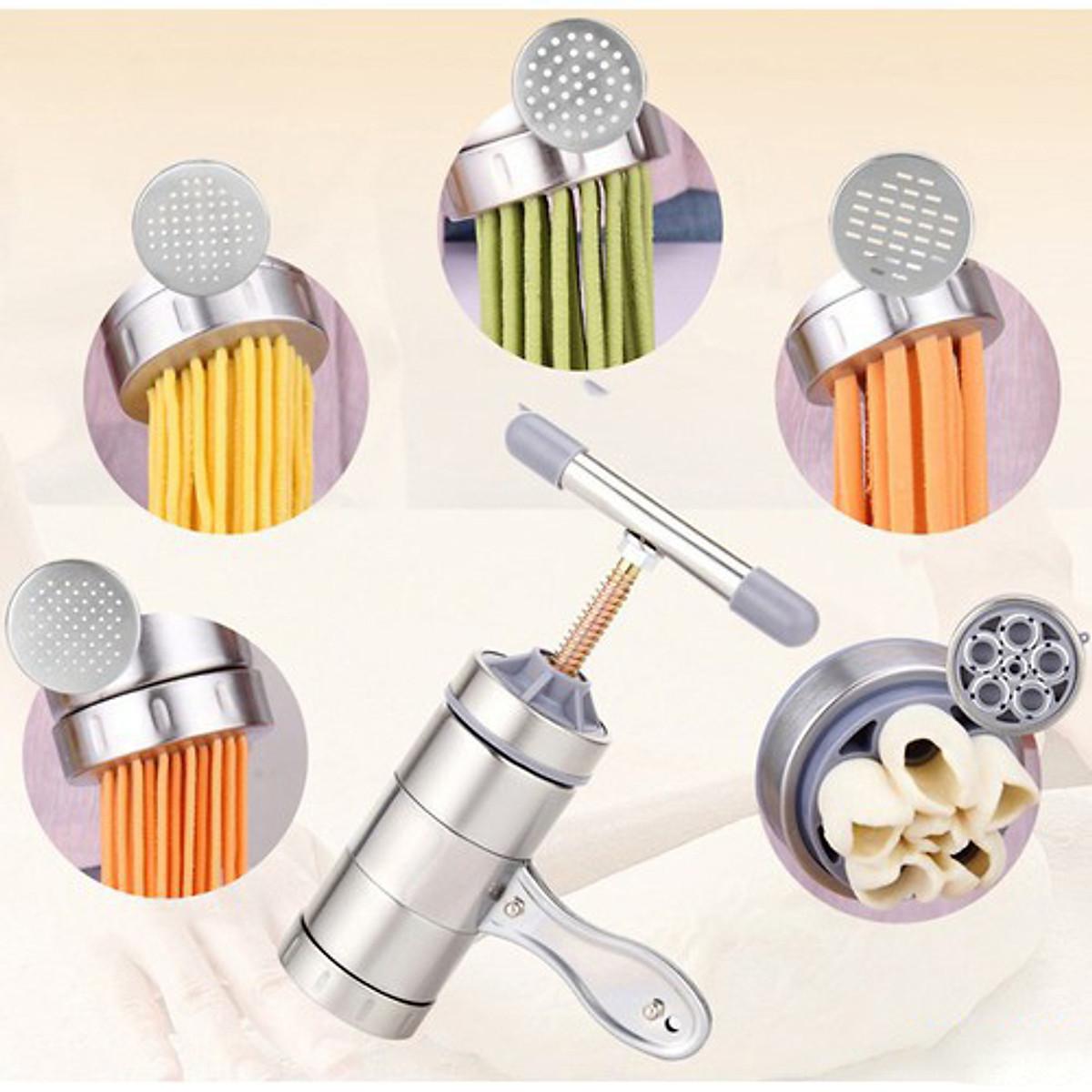 Tiện dụng : Dụng cụ làm bún tươi tại nhà thiết kế với 5 đầu khuôn cho ra 5 loại mì; bún; bánh canh khác nhau, tạo hình dễ dàng tháo lắp vào máy, giúp bạn không còn lo lắng về việc vệ sinh sạch máy sau khi sử dụng