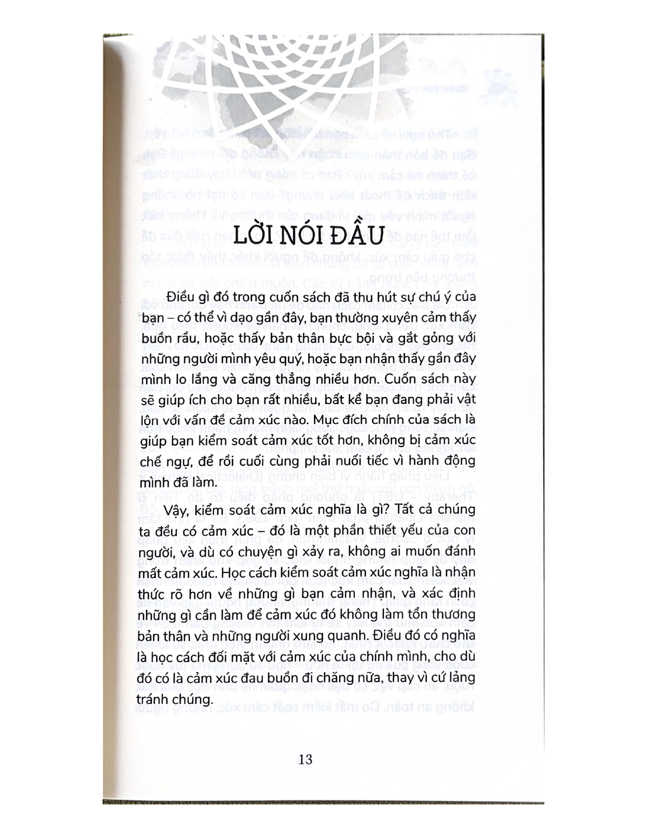 Đừng Để Cảm Xúc Điều Khiển Cuộc Đời-Vanlangbooks I.Giới thiệu sách "Cuộc đời cho bạn vô vàn lý do để nổi giận, buồn bã, sợ hãi, thất vọng – và những cảm xúc này là bình thường. Nhưng đôi khi, bạn cảm thấy như cảm xúc đang giành lấy quyền điều khiển, vượt khỏi tầm kiểm soát của mình, như thể cảm xúc có trí óc riêng vậy. Những cảm xúc choáng ngợp này còn khiến cho tình hình tồi tệ hơn khi can thiệp vào chuyện học hành ở trường, phá hoại mối quan hệ, và ngăn không cho bạn tận hưởng cuộc sống vui vẻ, hạnh phúc. Đừng Để Cảm Xúc Điều Khiển Cuộc Đời là sách bài tập hỗ trợ các bạn trẻ tuổi teen khi rơi vào tình huống này. Bạn đọc sẽ tìm thấy trong sách những cách kiểm soát cảm xúc, giúp bạn sẵn sàng đương đầu với mọi “quả chanh” cuộc đời ném vào mình. Dựa trên liệu pháp hành vi biện chứng, một phương pháp trị liệu được thiết kế nhằm hỗ trợ những người gặp khó khăn trong việc xử lý những cảm xúc mãnh liệt, sách sẽ hướng dẫn bạn các kỹ năng cần thiết để vượt qua những thăng trầm trong đời với sự tự tin và duyên dáng. Sách sẽ đưa ra những kỹ thuật đơn giản giúp bạn: