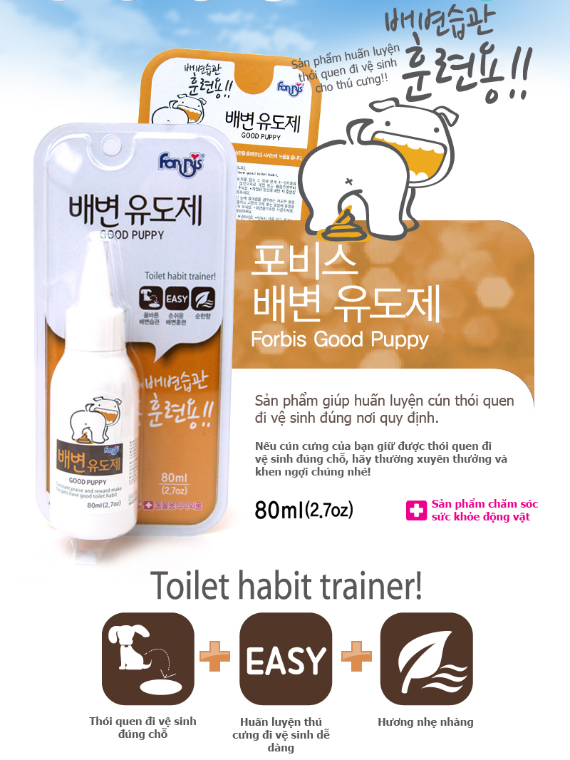 Dung Dịch Hướng Dẫn Đi Vệ Sinh Dành Cho Chó Mèo Forcans 8809058114798 (80ml) là sản phẩm huấn luyện giúp cún có thói quen đi vệ sinh đúng nơi quy định