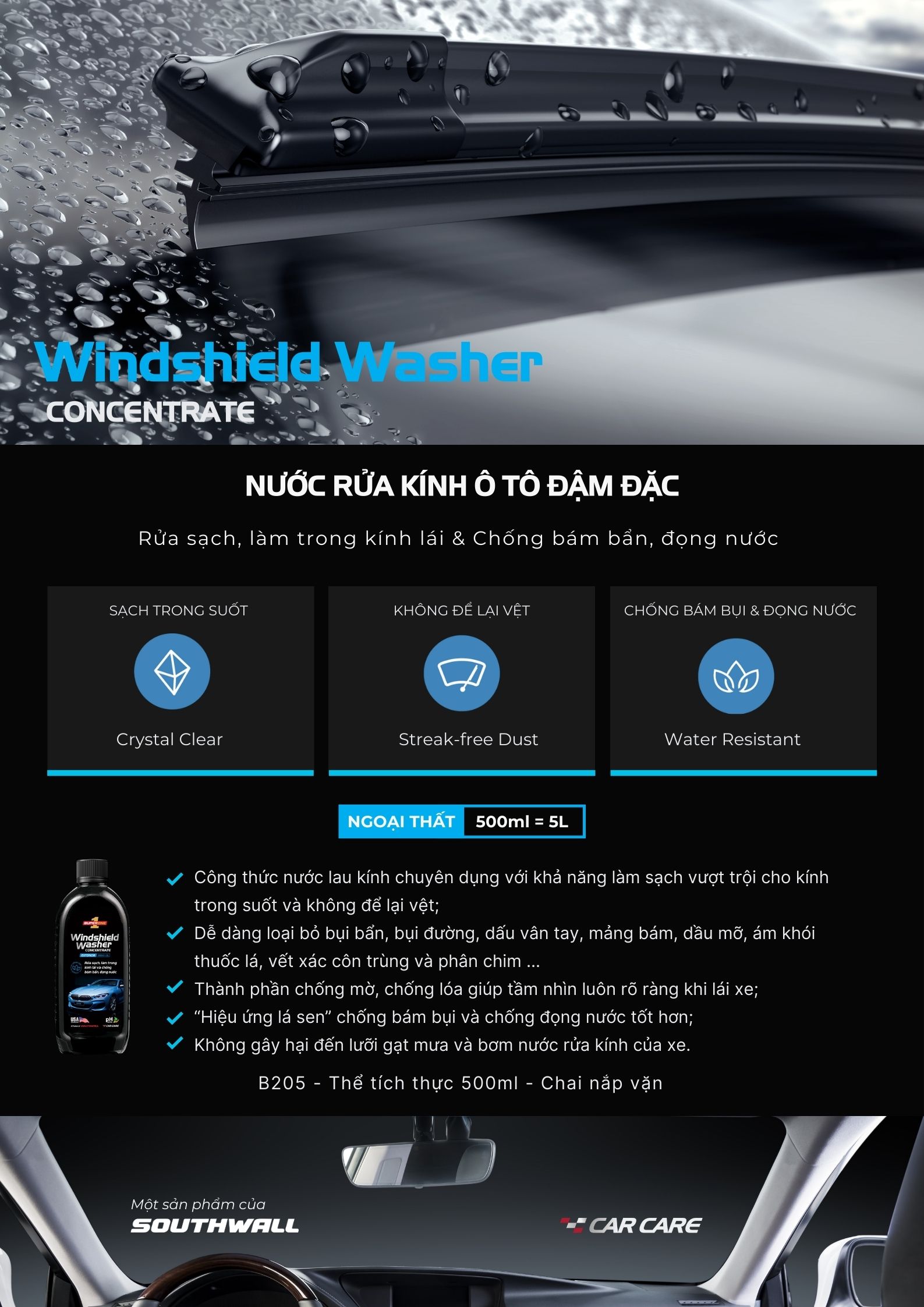✨Dung Dịch Rửa Kính Ô Tô SUPERONE Winshield Washer Concentrate - Exterior SOUTHWALL B205