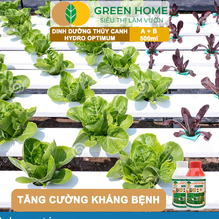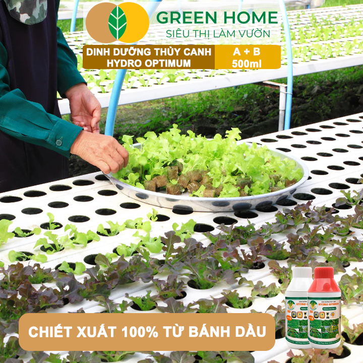 ✨Dung Dịch Thủy Canh Hydro Optimum, GreenHome, Bộ 2 chai 500ml, Dinh Dưỡng Thủy Canh Rau Ăn Lá, Hữu Cơ