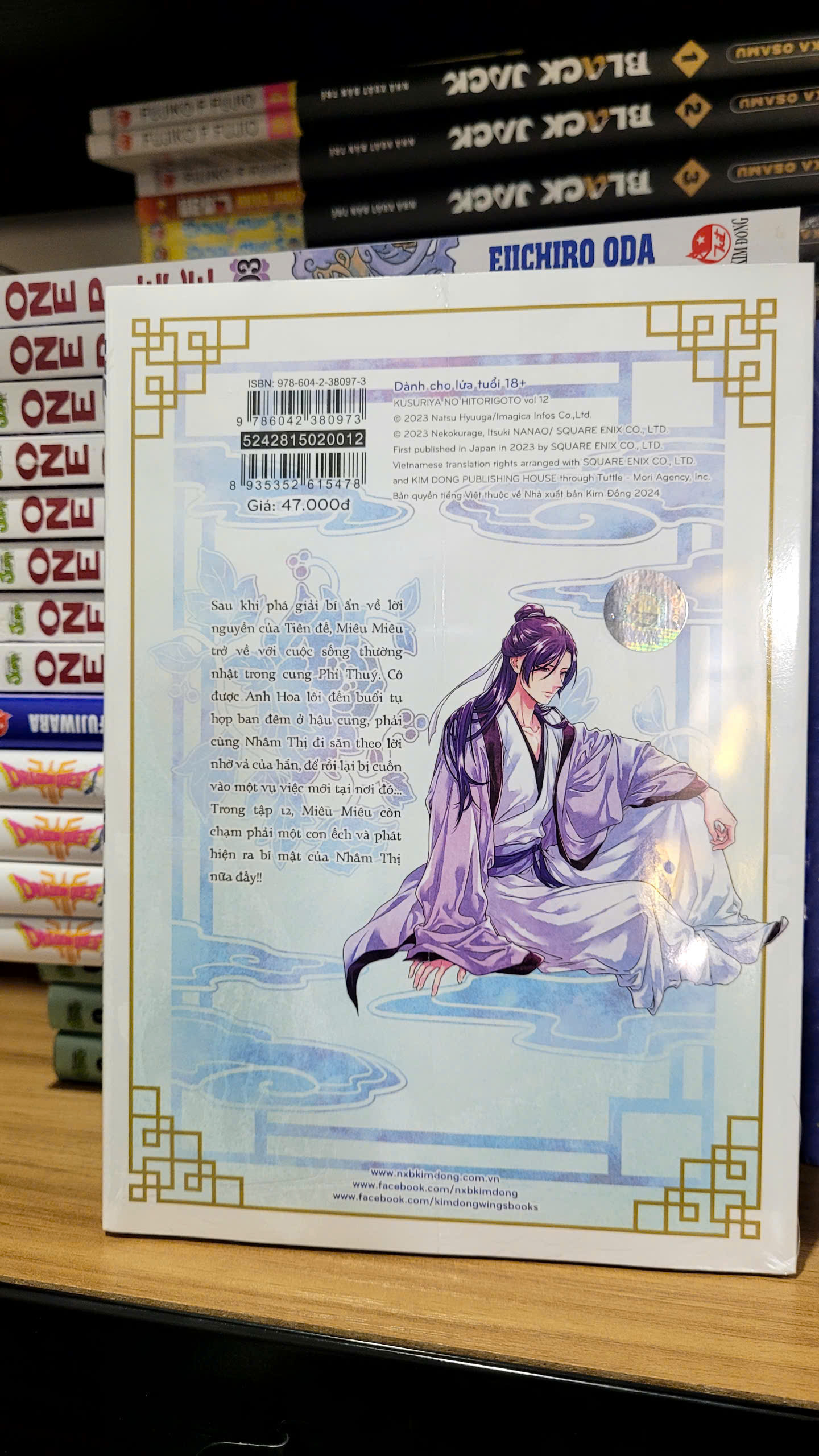 - WINGS BOOKS - Thương hiệu sách trẻ của NXB Kim Đồng hân hạnh gửi đến các bạn độc giả phiên bản chuyển thể manga đặc sắc của bộ light-novel siêu ăn khách DƯỢC SƯ TỰ SỰ! Series đã vượt mốc 33 triệu bản tại thị trường Nhật Bản, luôn thống trị bảng xếp hạng bán chạy mỗi khi ra tập mới! Phiên bản anime chuyển thể liên tục có mặt trong top các chương trình được xem nhiều nhất trên Netflix kể từ khi lên sóng vào tháng 10/2023. Số tập: 13+ (on-going) Dược Sư Tự Sự (Manga) – Tập 12 - Tặng kèm 01 Standee ivory + Bìa áo 2 mặt với hình ảnh mua ngoài không có trong sách. Bìa áo 2 mặt chỉ có ở bản in đầu.