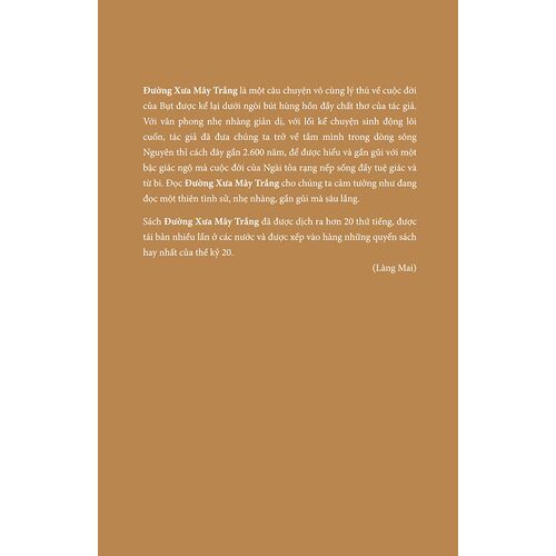 Đường Xưa Mây Trắng là một câu chuyện vô cùng lý thú về cuộc đời của Bụt được kể lại dưới ngòi bút hùng hồn đầy chất thơ của tác giả. Với văn phong nhẹ nhàng giản dị, với lối kể chuyện sinh động lôi cuốn, tác giả đã đưa chúng ta trở về tắm mình trong dòng sông Nguyên thỉ cách đây gần 2.600 năm, để được hiểu và gần gũi với một bậc giác ngộ mà cuộc đời của Ngài tỏa rạng nếp sống đầy tuệ giác và từ bi. Đọc Đường Xưa Mây Trắng cho chúng ta cảm tưởng như đang đọc một thiên tình sử, nhẹ nhàng, gần gũi mà sâu lắng.