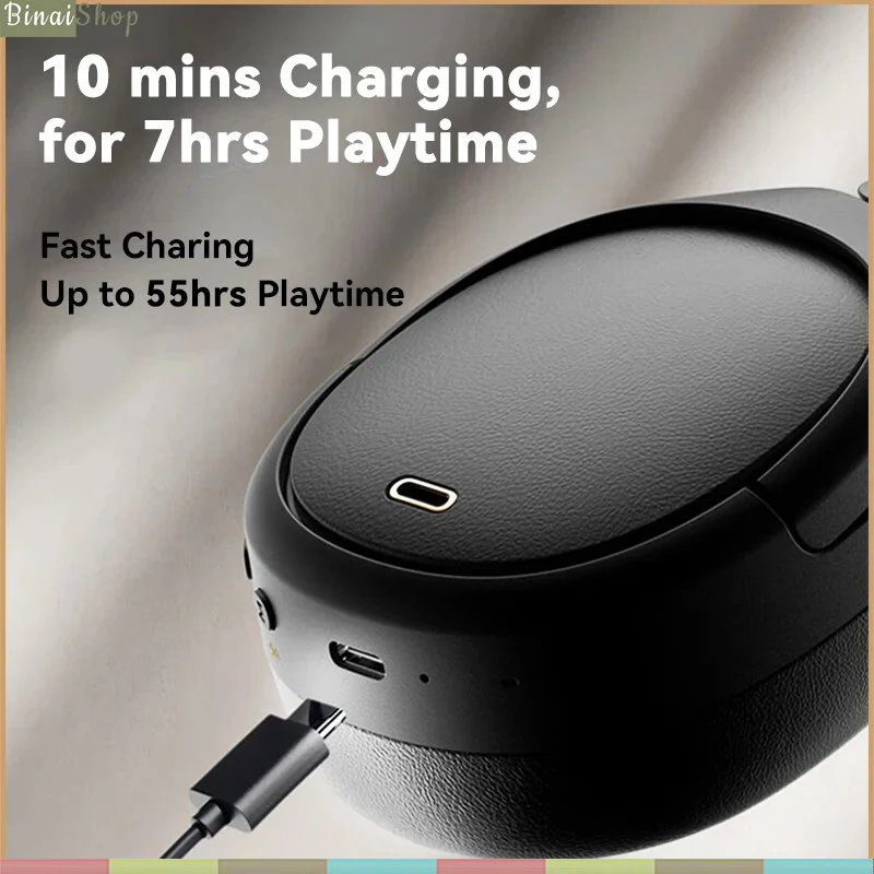 - Thời lượng pin dài lên đến 55 giờ (phát nhạc thông thường), 34 giờ đối với ANC. Hỗ trợ sạc nhanh, chỉ sạc 10 phút có thể sử dụng thêm được 10 giờ.