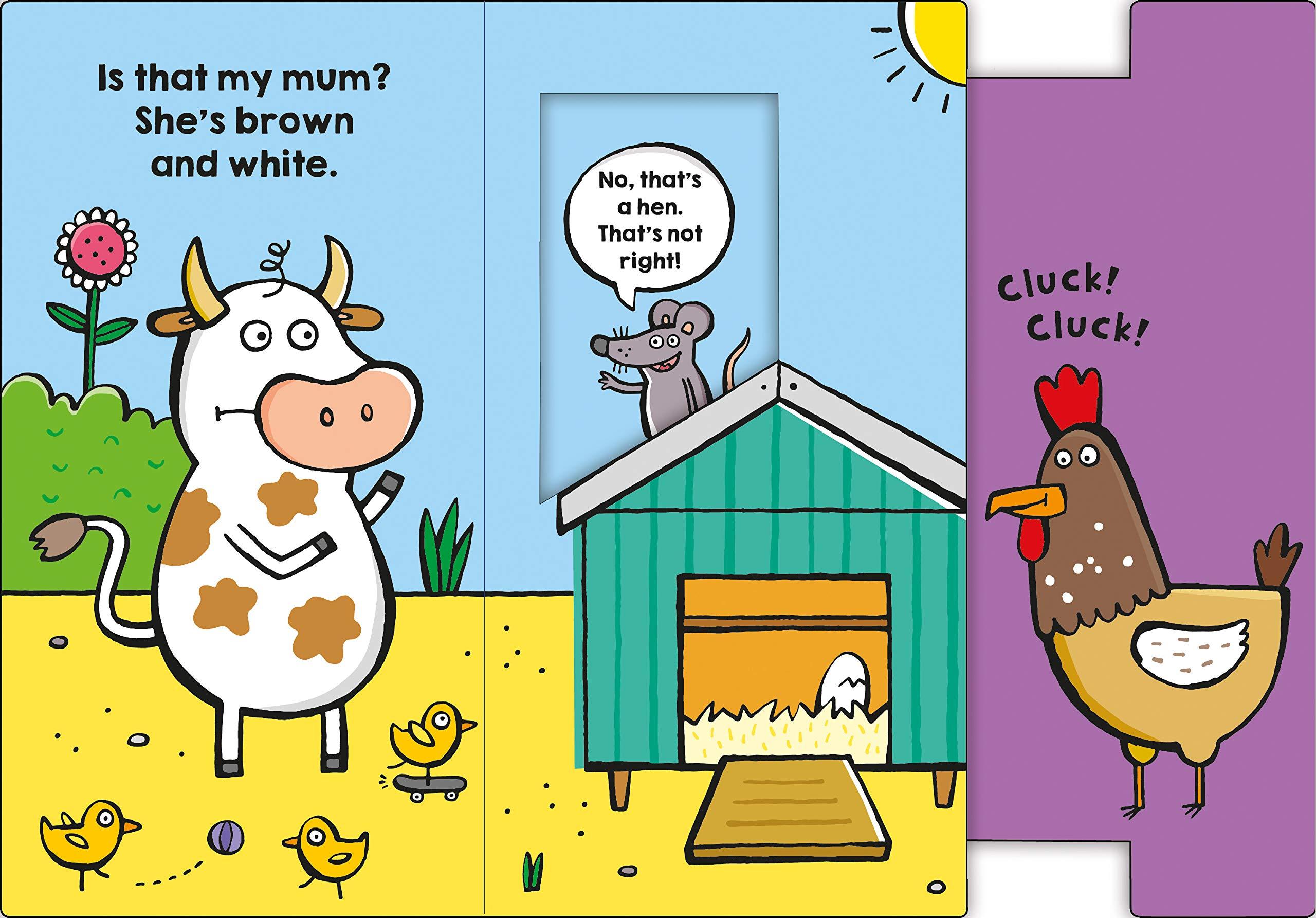 Toddlers will love Roger Priddy's Funny Friends: Farmyard Bottoms a seek and find romp around the farm with four fun pull-tabs! Join Cow as he searches around the barnyard for his mum, muddling up different animals along the way. The fun rhyming text encourages young children to ask questions and participate in the story as they try to work out which animal is which.