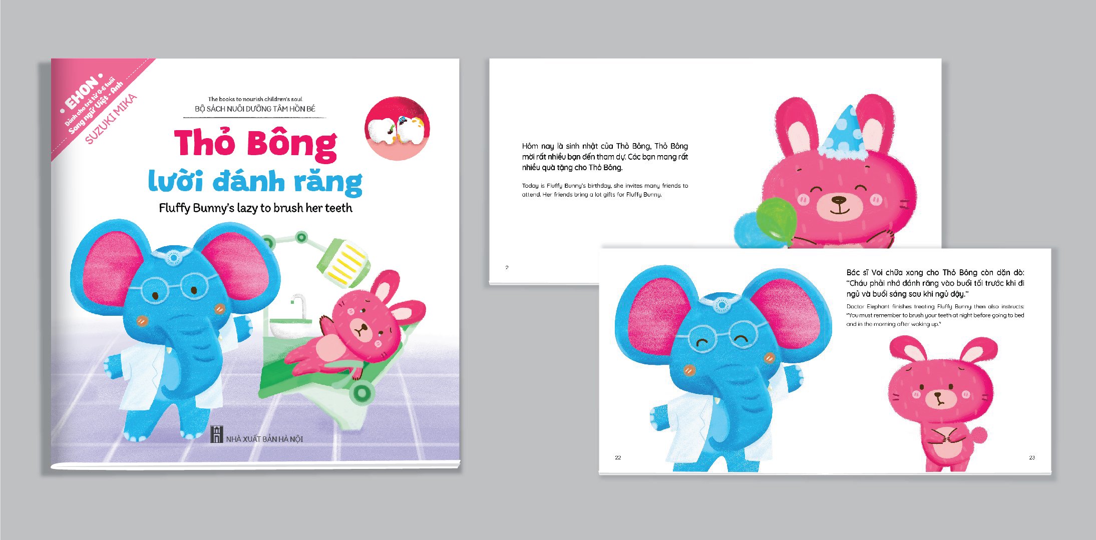 Mua tại TiktokBộ Ehon kĩ năng sống Thỏ Bông (song ngữ Việt Anh) 10 quyển (Quét mã QR file nghe) Với những câu chuyện giáo dục kĩ năng sống cho trẻ trong cuộc sống hàng ngày. Nội dung đơn giản, dễ hiểu, đồng thời ẩn chứa những bài học, lời khuyên nhủ yêu thương của bố mẹ dành cho con khi con sợ đau, lười học, lười ăn, đi ngủ muộn... Những lời động viên, khuyên bảo con một cách nhẹ nhàng để con hiểu và tự giác hơn, giúp con ngoan ngoãn, tự lập hơn trong cuộc sống. Trọn bộ gồm 10 quyển: