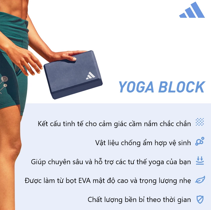 - Gạch Yoga Adidas ADYG-20150 là dụng cụ bổ trợ trong quá trình tập Yoga, một dụng cụ thể lực trong phòng tập. - Sản phẩm được thiết kế với nhiều tính năng đặc biệt