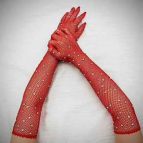 ✨Găng tay sang chảnh màu đỏ dạng lưới đính đá lấp lánh cho Cô dâu và Dạ hội, đi tiệc, sự kiện, lễ hội, đạo cụ chụp ảnh, studio MS: 44839