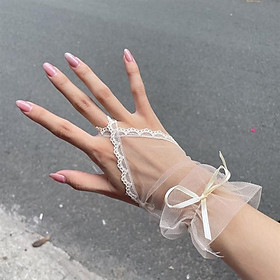 Găng tay ngắn: Lựa chọn hoàn hảo cho những cô dâu thích phong cách trẻ trung, nhẹ nhàng. Găng tay ngắn dễ dàng kết hợp với váy cưới ngắn hoặc kiểu dáng tối giản nhưng không kém phần quyến rũ.