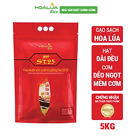Mua tại TiktokVới sản phẩm tươi sống, trọng lượng thực tế có thể chênh lệch khoảng 10%. Gạo ST25 Hoa Lúa sản xuất từ giống lúa thơm phẩm chất thượng hạng của vùng Sóc Trăng, được vinh danh là gạo Ngon nhất Thế giới năm 2019 và 2023. ĐẶC TÍNH: Gạo ST25 Hoa Lúa với hạt gạo thon dài, đều và trắng trong, không bạc bụng. Cơm chín cơm mềm dẻo, có mùi thơm đặc trưng. Khi để nguội cơm vẫn giữ được độ ngon và dẻo, không bị khô cứng. Đạt chuẩn Global GAP, đóng gói theo tiêu chuẩn Châu Âu HACCP. HƯỚNG DẪN SỬ DỤNG: