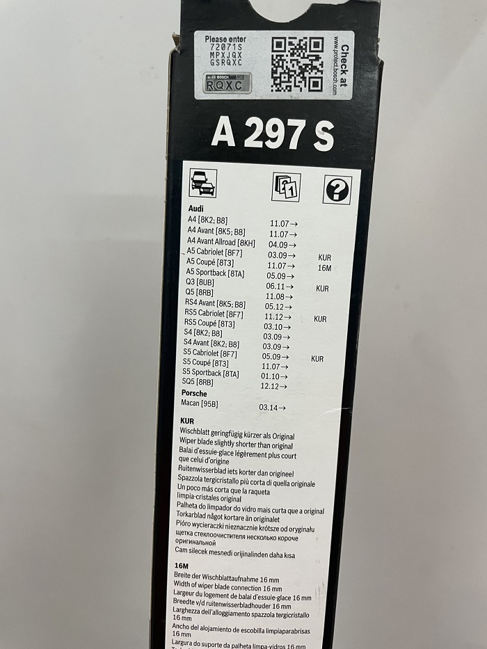 ✨Gạt Mưa BOSCH AeroTwin Euro Set A297S Kích thước 24/60cm – 20/50cm | Dành cho Xe Audi Q5, Porsche Macan, Volvo XC90