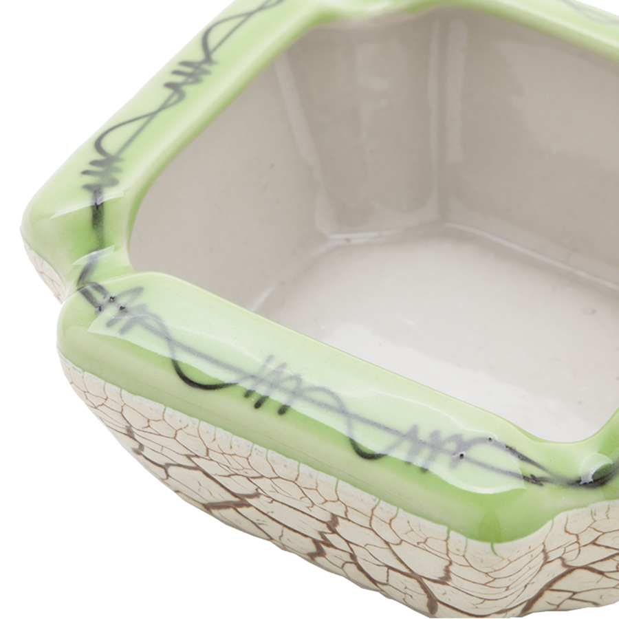 - Gạt tàn được làm bằng chất liệu gốm sứ tráng men sáng bóng, chịu nhiệt cao nên khi bạn đựng tàn thuốc sẽ không lo để lại dấu vết hay hoen ố gạt tàn.