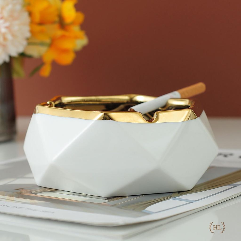 ✨Gạt Tàn Sứ | Gạt Tàn Hoàng Kim Chất Liệu Sứ Kẻ Viền Vàng Phong Cách Tân Cổ Điển NORDIC