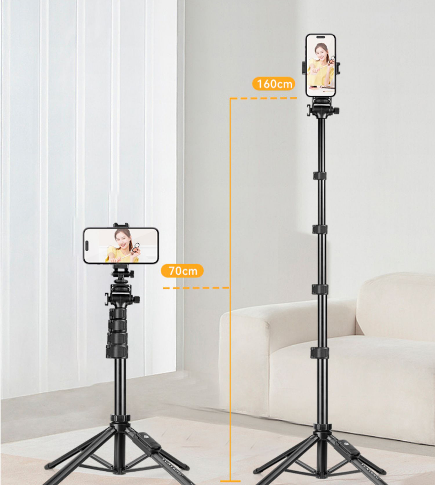Thông tin sản phẩm: - Chiều cao max: 158cm - Thu gọn: 43cm - Cân nặng 550g - Chịu lực 1,5kg - Phụ kiện kèm theo gồm Kẹp điện thoại + Remote Mô tả sản