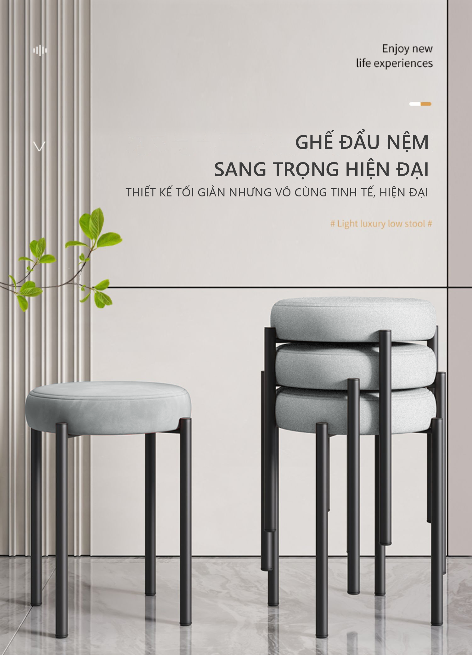Bộ sản phẩm gồm: - 4 ghế đôn ngồi được bọc bằng chất liệu vải nỉ mát kiểu tròn làm thon gọn cho phòng khách nhỏ, tiện dụng, có thể làm đôn ngồi chơi, ngồi