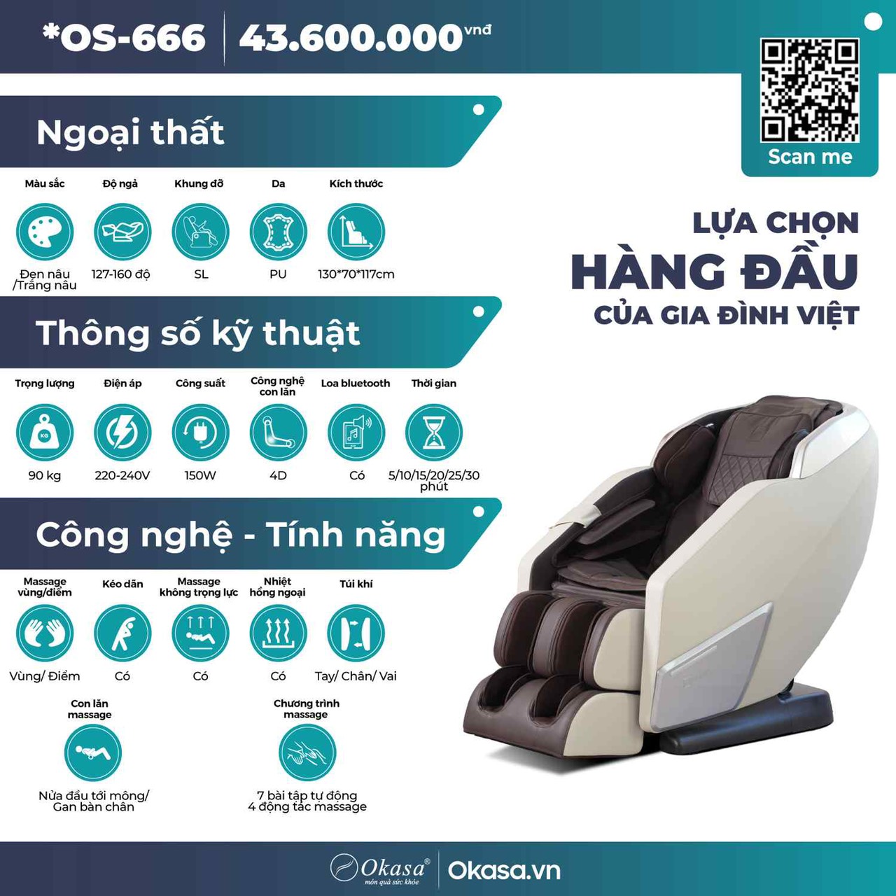 Mua tại TiktokOkasa OS-666 là ghế massage hiện đại, sở hữu những công nghệ vượt trội so với các sản phẩm cùng phân khúc.