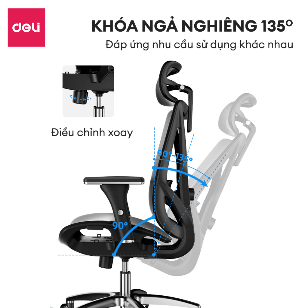 Đặc điểm nổi bật Thiết kế công thái học: hỗ trợ cột sống, giảm đau mỏi lưng – cổ khi ngồi lâu. Lưng lưới thoáng khí: ngồi thoải mái, không nóng lưng. Đệm mút bọc