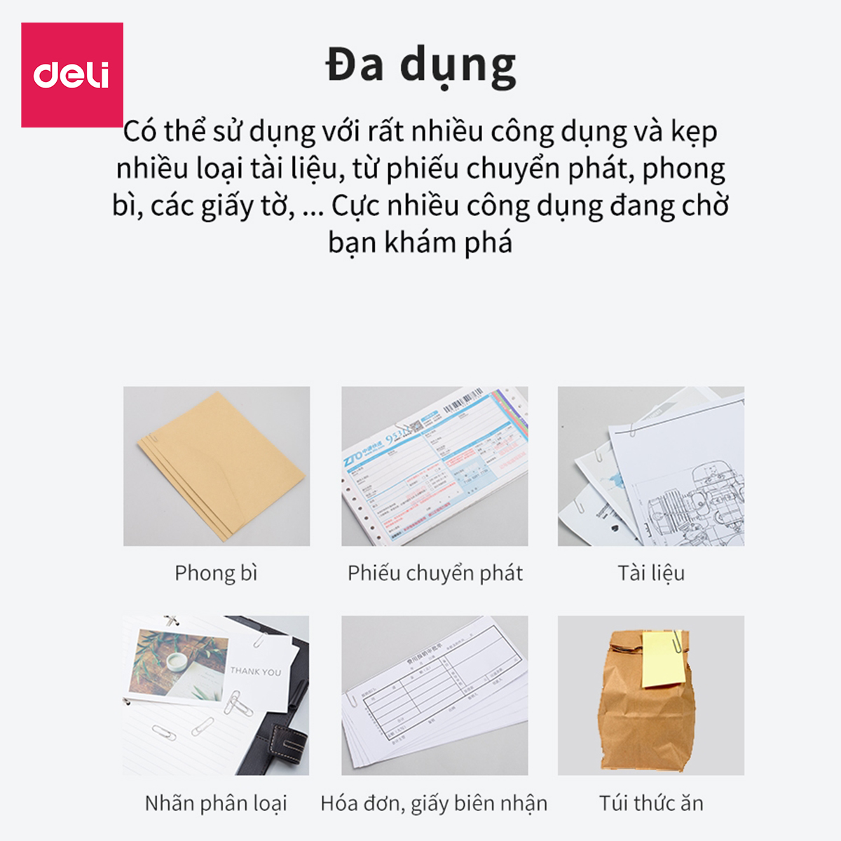 Là sản phẩm thiết yếu được sử dụng rộng rãi trong các văn phòng, cửa hàng photocopy. Sản phẩm giúp kẹp chặt, đóng gọn các giấy tờ, văn bản vào làm một rất đơn giản,