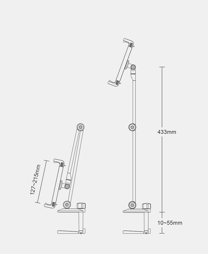 • Phần arm, gồm 2 thanh bằng hợp kim nhôm và 3 khớp có thể chỉnh độ nặng nhẹ, cho tuỳ ipad nặng hay nhẹ.