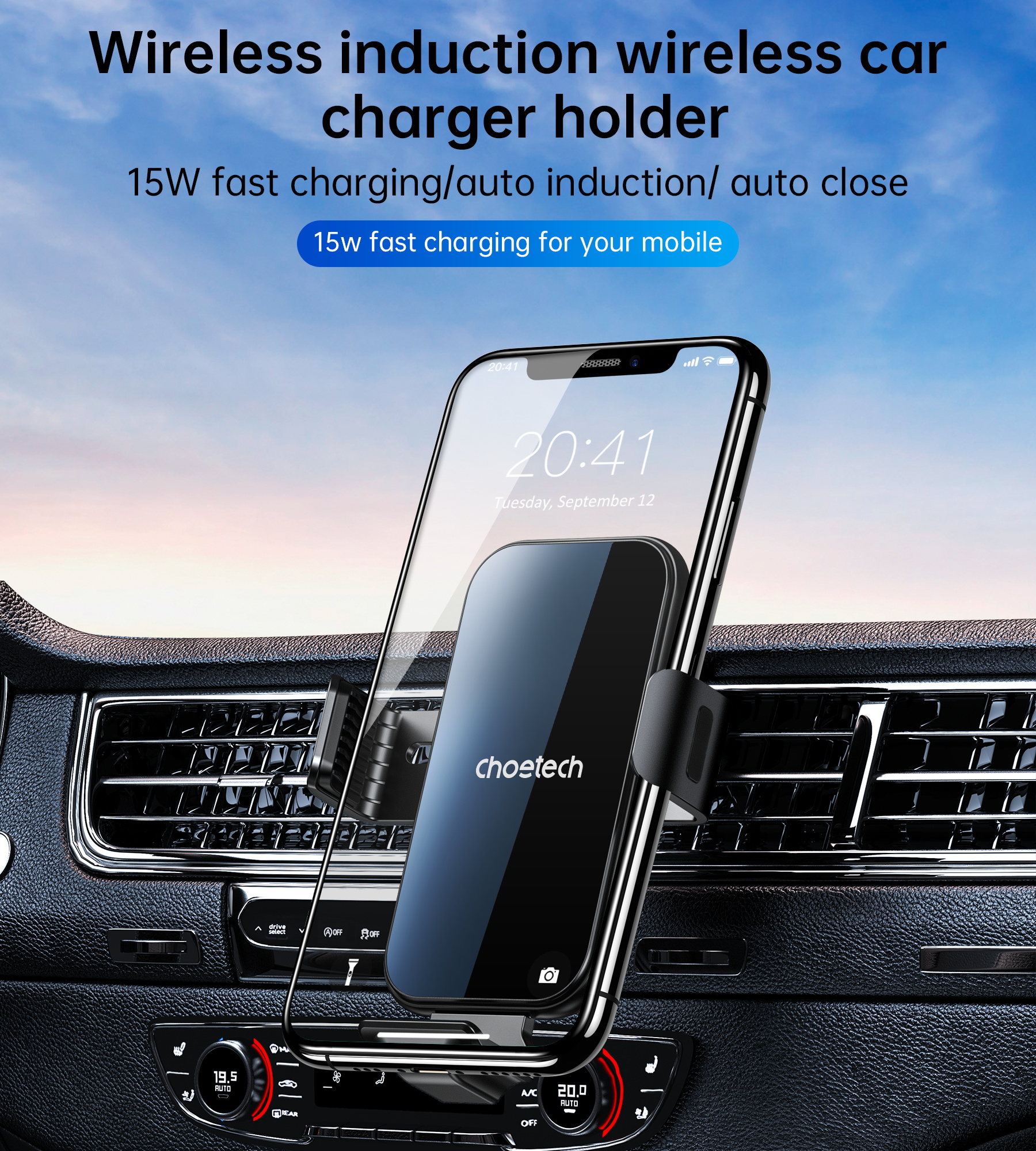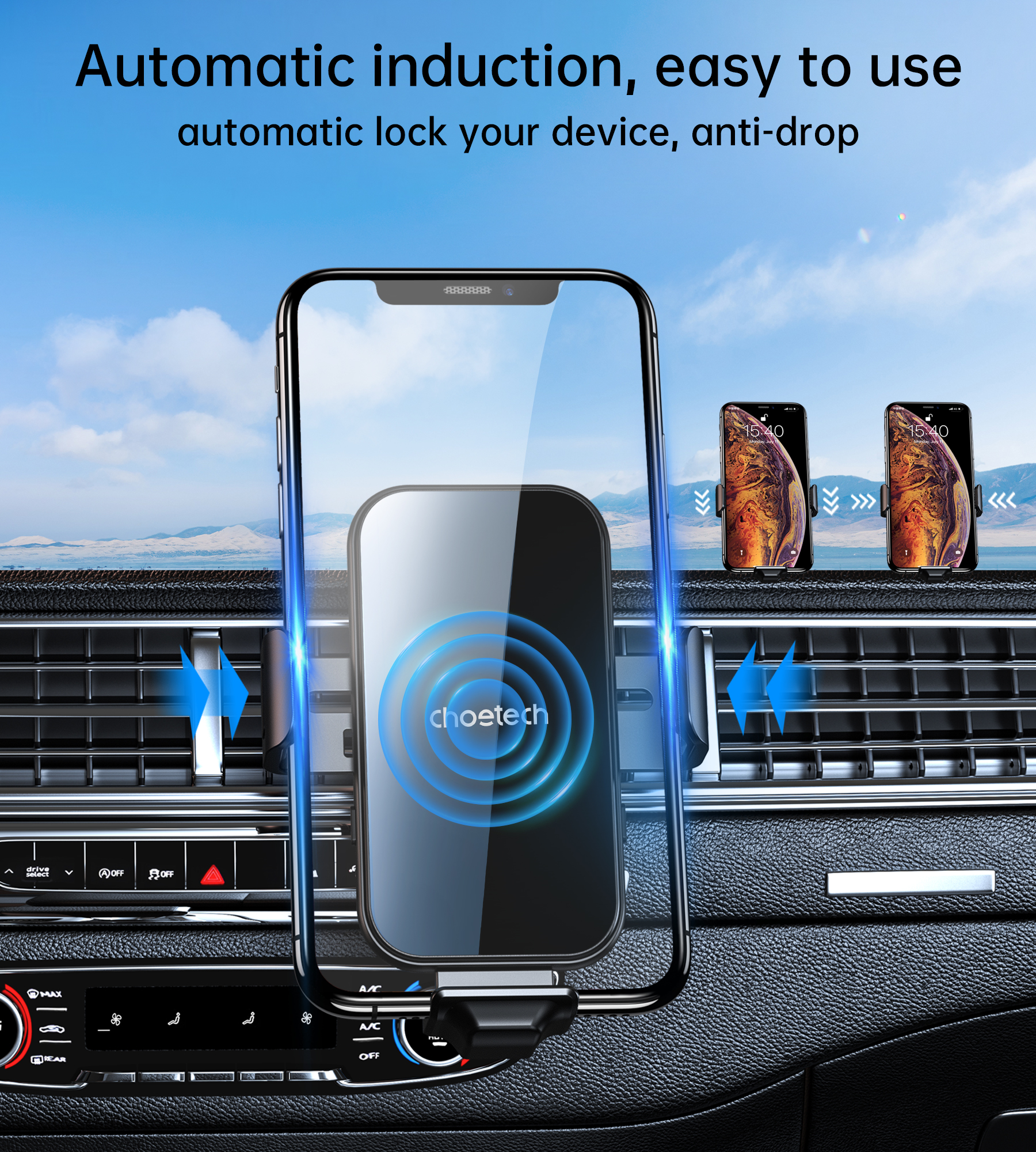 Mua tại TiktokGiới thiệu Gía đỡ điện thoại Choetech T201 tích hợp sạc không dây trên ô tô 15w - Hàng chính hãng