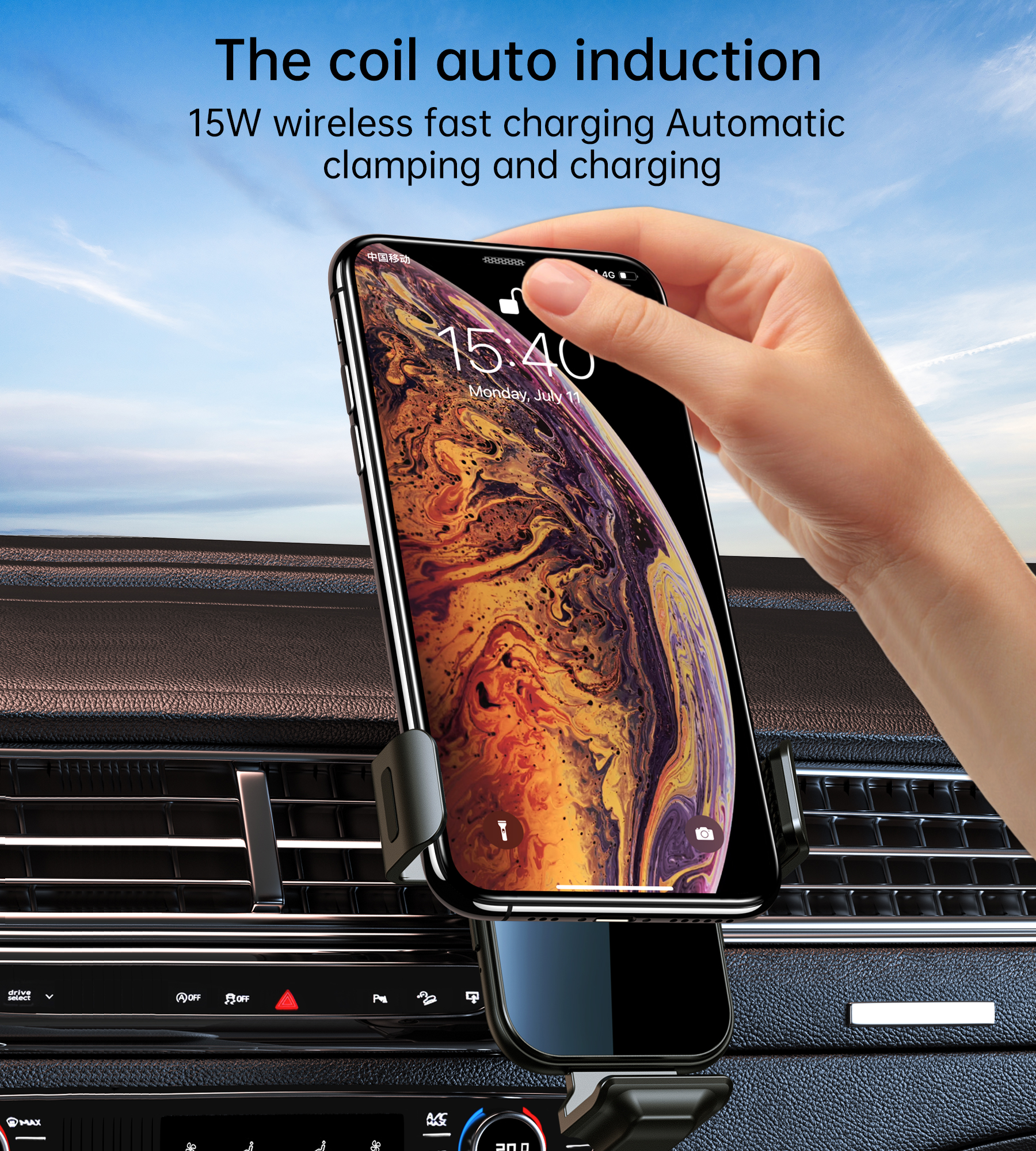 Bộ đế giữ điện thoại dùng trên xe hơi Baseus Light Electric Holder Wireless Charger 15W (tích hợp sạc nhanh không dây 15W và cảm biến tự động nhận diện thiết bị) LV637-BK * Giới
